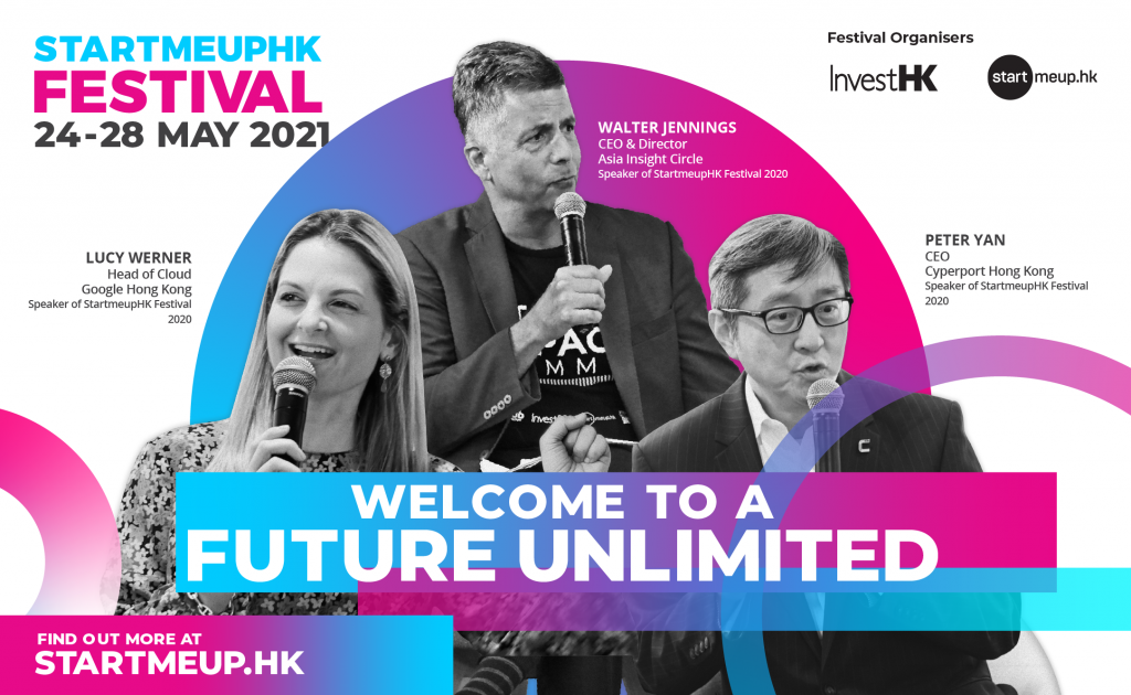 StartmeupHK Festival, Asia’s leading annual startup event, returns in a virtual format from 24-28 May. Organised by Invest Hong Kong under its StartmeupHK initiative and guided by this year’s theme “Welcome to a Future Unlimited”, the Festival’s schedule is fully packed with exciting and insightful events, with 14 main events throughout the week that will unlock business opportunities for startups on an international level and discuss the latest ideas, trends and innovation with an audience from around the world.